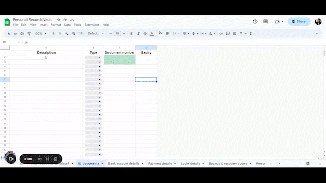 That's where the Personal Records Vault steps in. It's an all-inclusive, user-friendly Google Sheets template designed to securely store and manage all your essential information in one place.